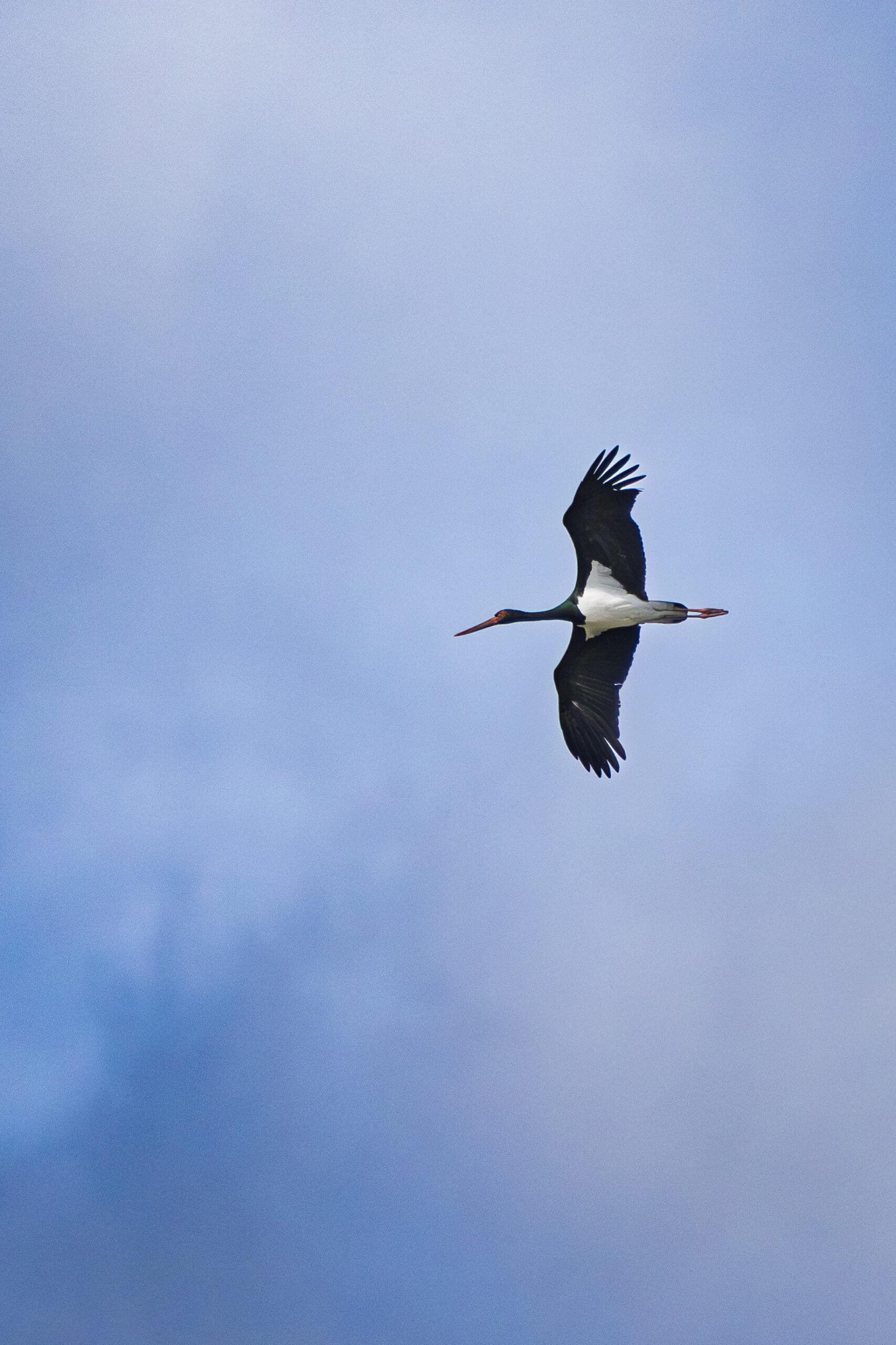 Svěží vítr mi do provoněného dubnového dne v Dolním Bousově přivál vzácná křídla. V rozfoukaných mracích nade mnou proletěl tajemný čáp černý. Proč tajemný? Na rozdíl od svého blízkého příbuzného, čápa bílého, nežije čáp černý poblíž lidí, nýbrž skrytě v hlubokých lesích. Pokud máme to štěstí zahlédnout tohoto plachého elegána, bývá to spíše v letu, jako tomu bylo v mém případě.